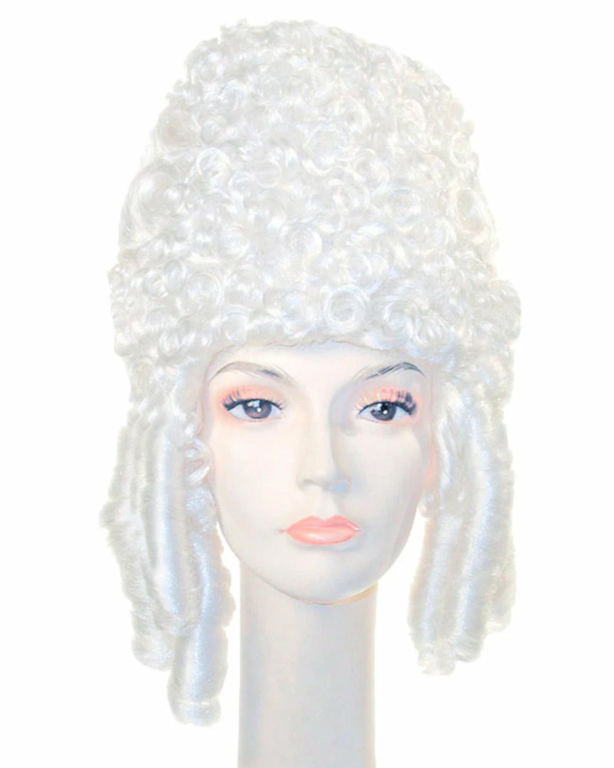 The Marie Antoinette Deluxe wig is an extremely well made high wavy powdered wig with large curls on sides and in back. Deluxe Marie Antoinette Colonial Lacey Costume Wig.