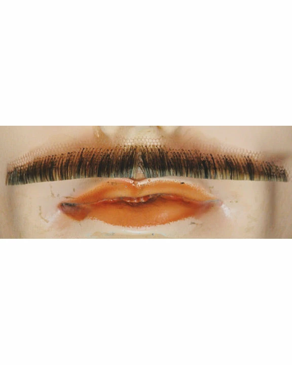 Synthetic fiber hand tied to lace baking. (Spirit gum adhesive sold separately.) Errol Flynn Synthetic Mustache LW415