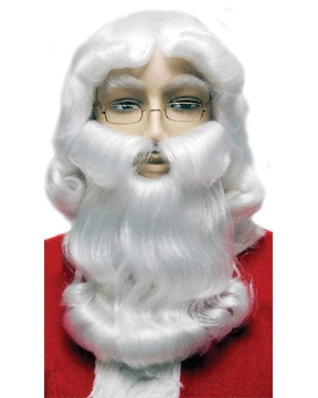 Santa Claus Set Washable Bargain B303. Inexpensive wig and beard set with wired mustache made from washable fiber. LW43