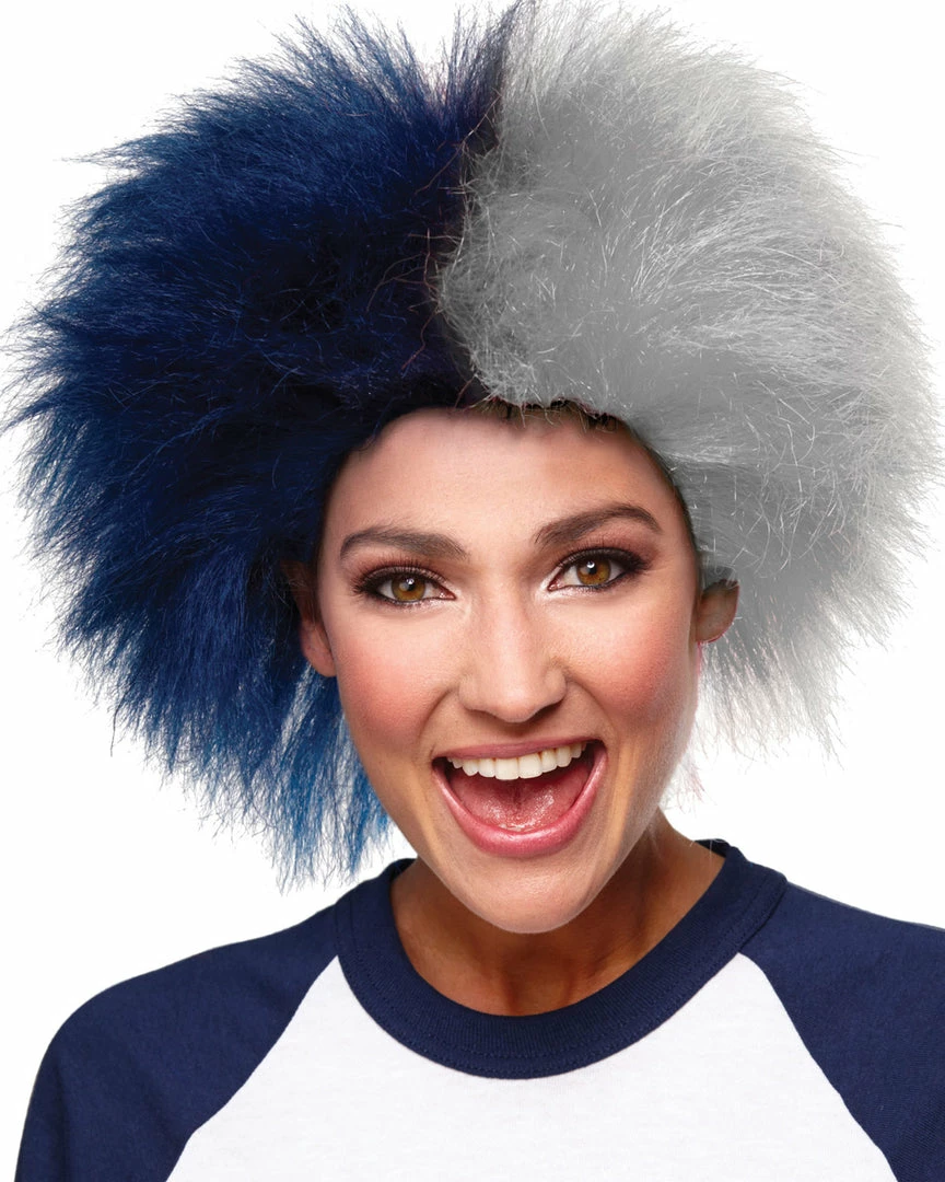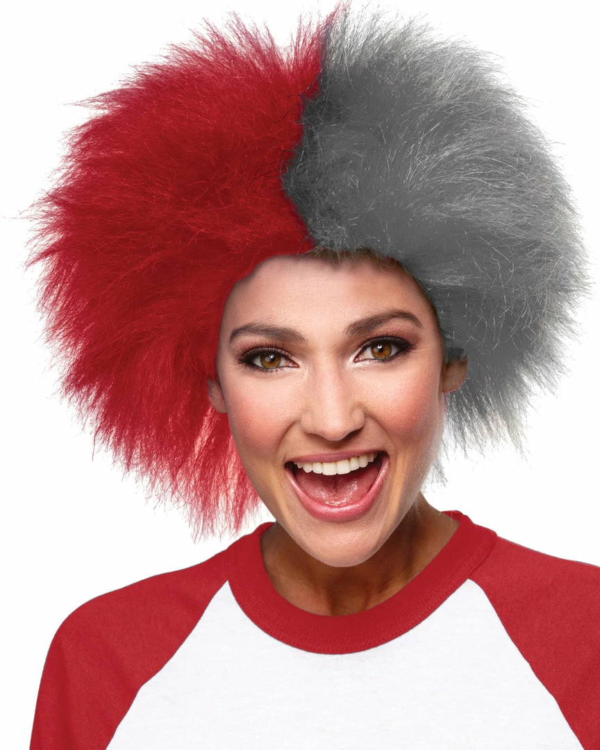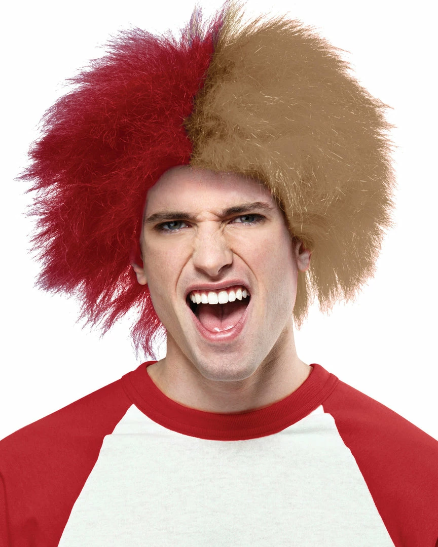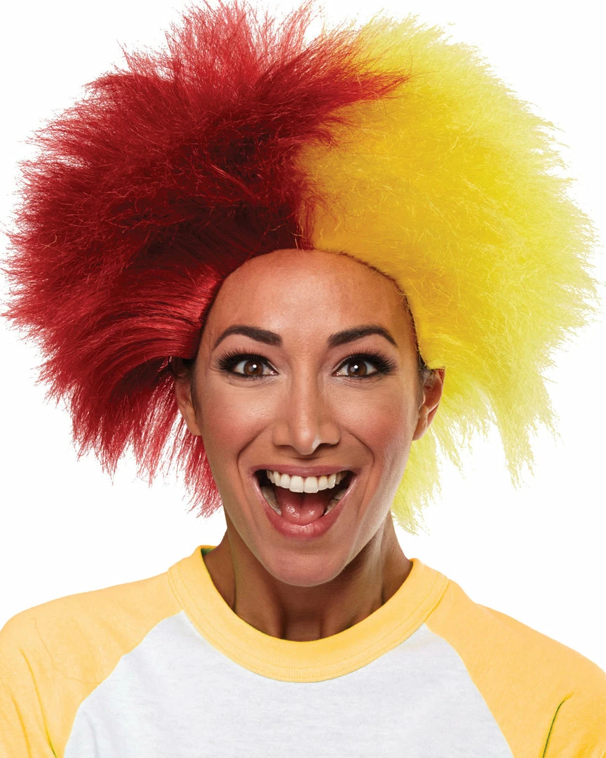 Sports Fan Wig. Adult sport wigs in multiple colors. Simply add makeup or airbrush your face with matching colors to support your favorite team. One size fits most adults.