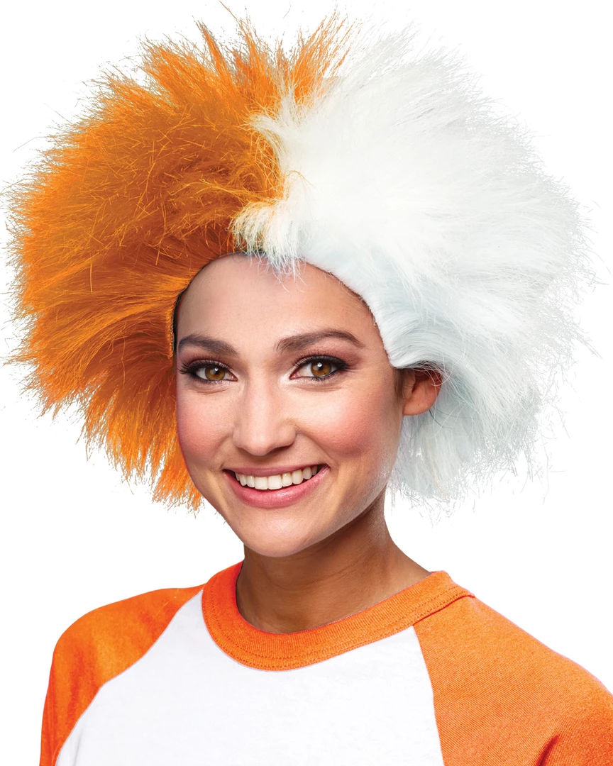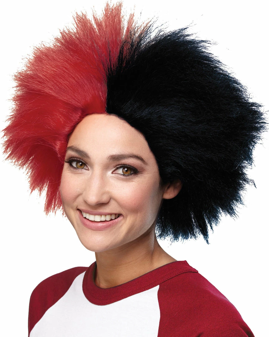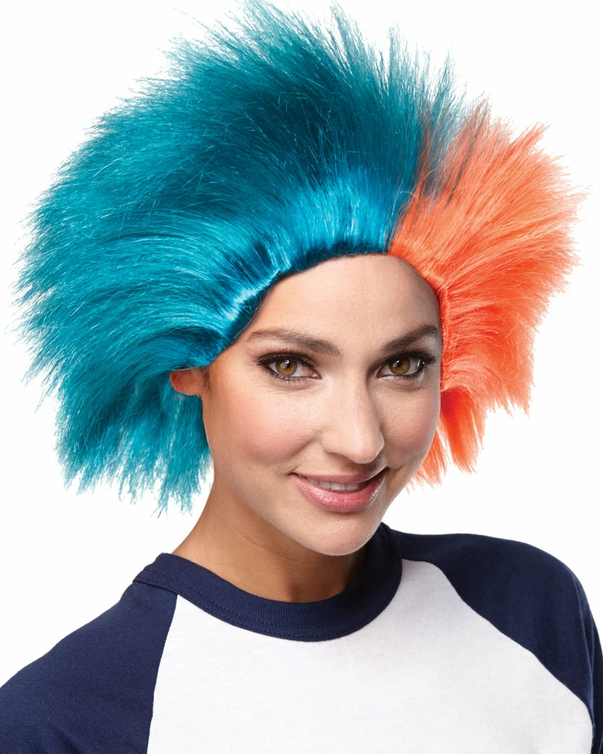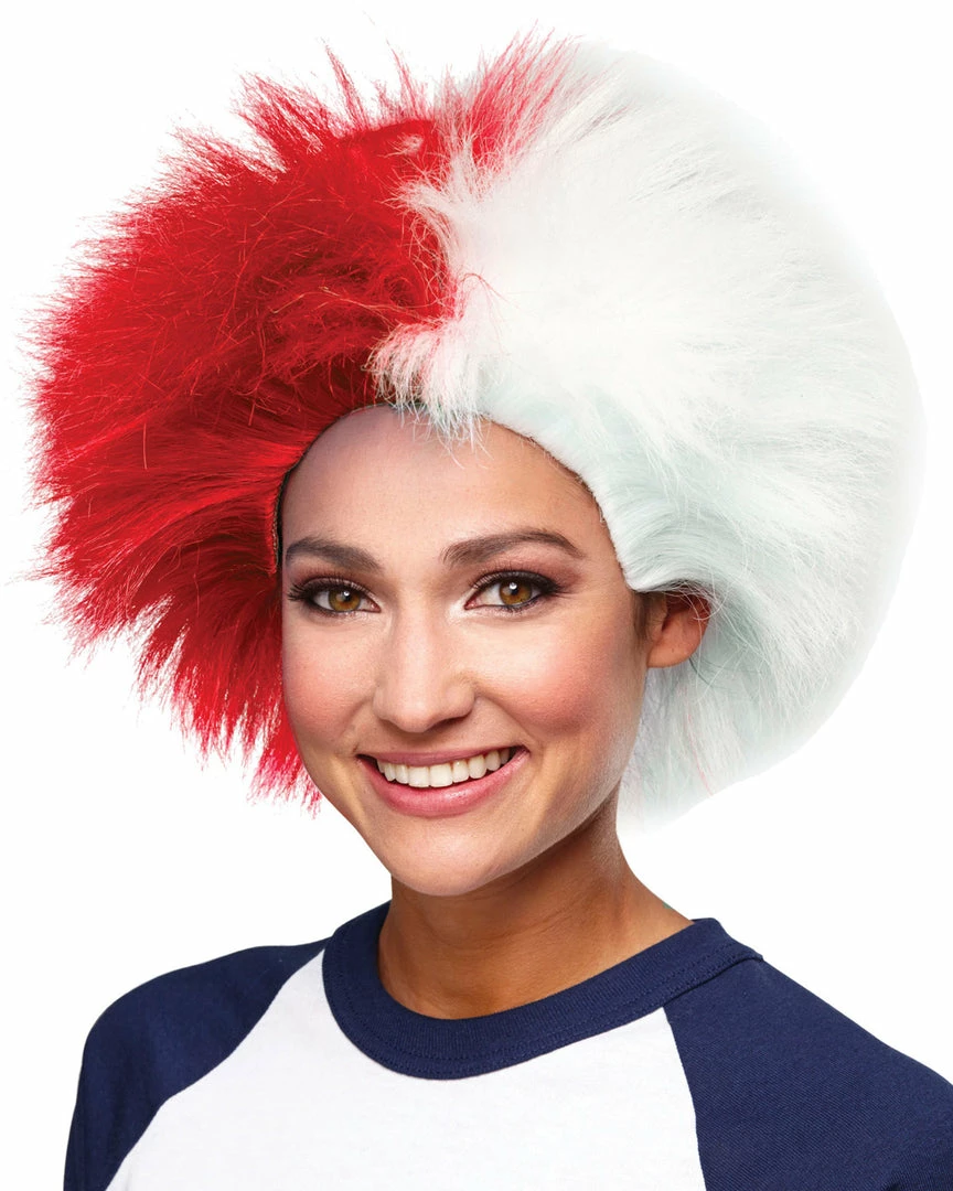 Sports Fan Wig. Adult sport wigs in multiple colors. Simply add makeup or airbrush your face with matching colors to support your favorite team. One size fits most adults.