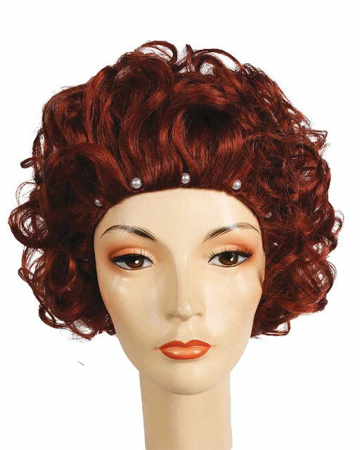 The Deluxe Elizabeth I is made with a high quality synthetic fiber and is a curly style with pearls that decorate the front. Deluxe Queen Elizabeth I England Lacey Costume Wig Tudor.