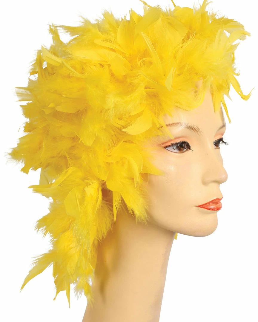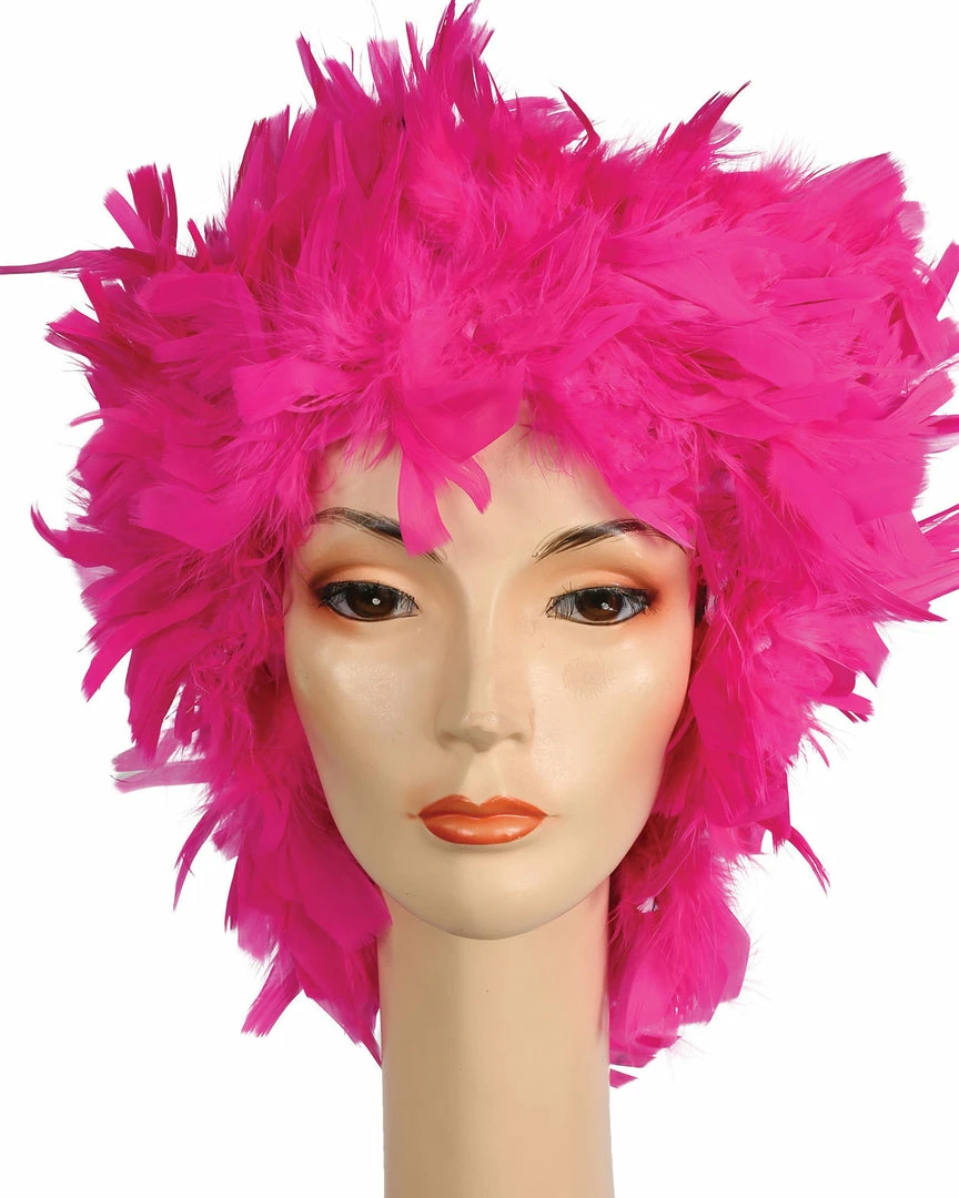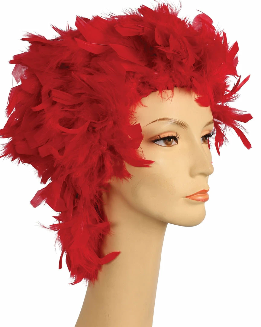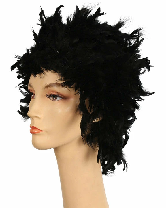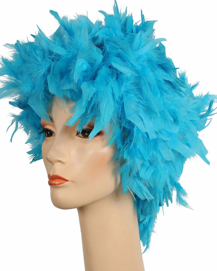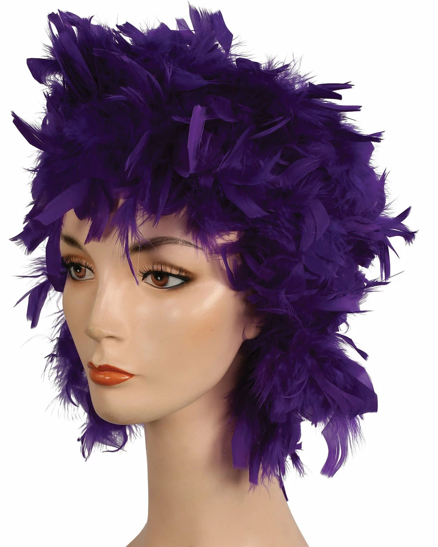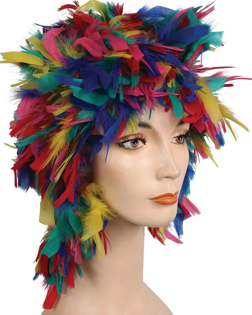 A wonderful new idea in clown wigs. Also good as a Phylis Diller ’60s style. Feather Clown Showgirl Mardi Gras Lacey Costume Wig