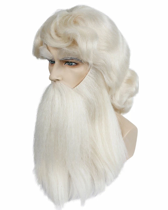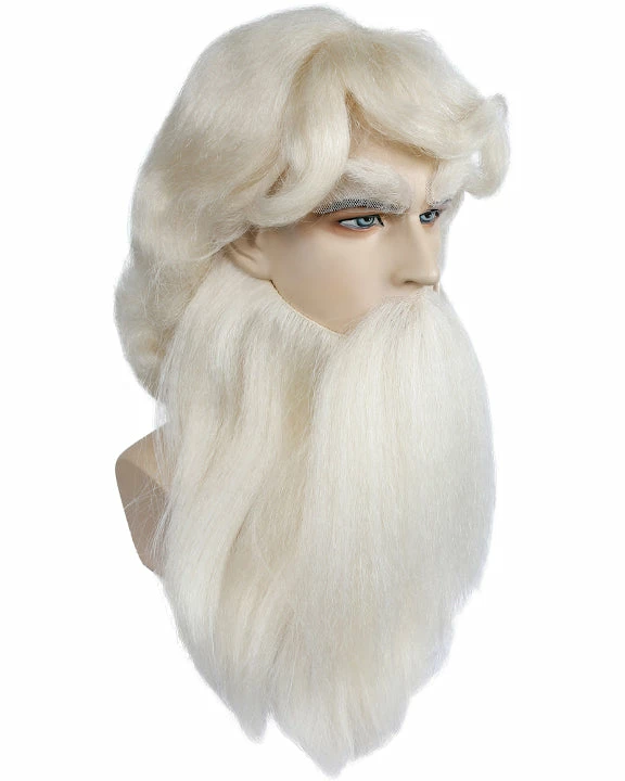 Beautiful straight haired wig & beard. Includes separate mustache and eyelashes require spirit gum adhesive not included. One size fits most adults.