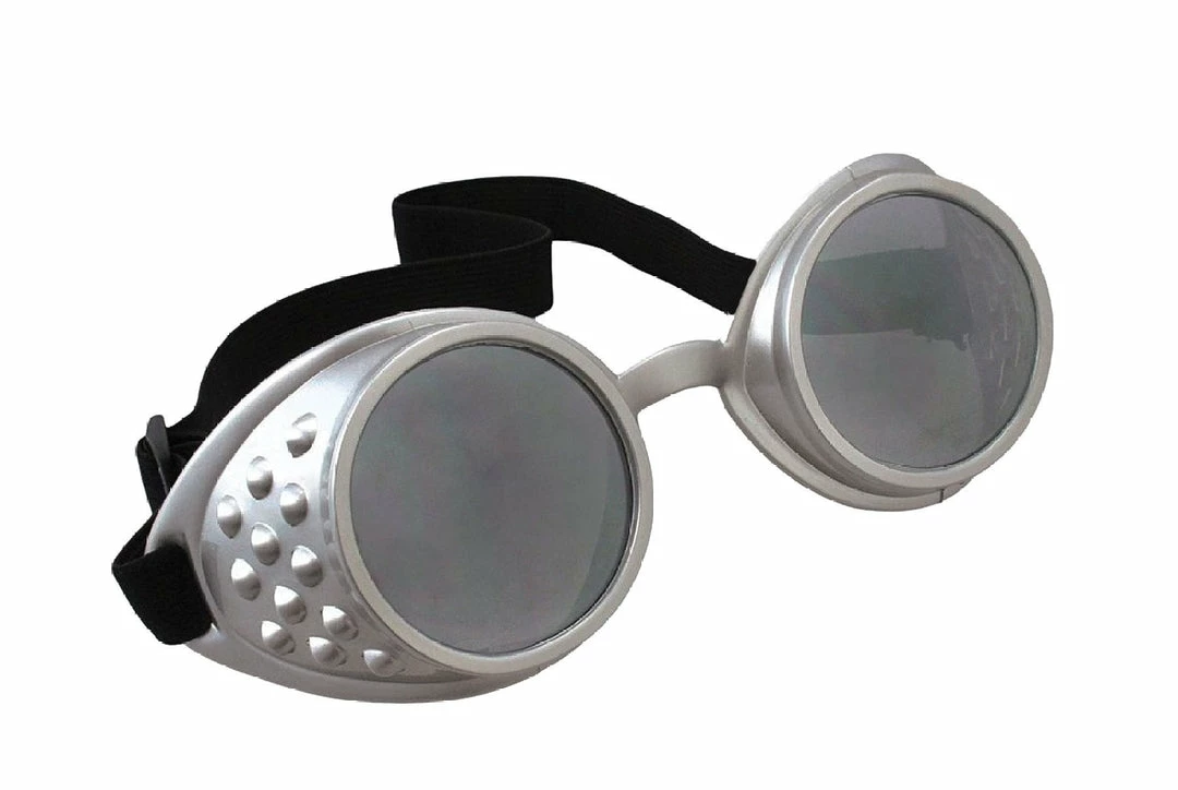 Glasses Aviator Goggles. Replicas of the ones dog-fighter pilots used to wear! Silver plastic frames, with clear lenses, and elastic band. Great for vintage aviators or motorcyclists. One size fits ages 12 and up. For ages 14 and up.