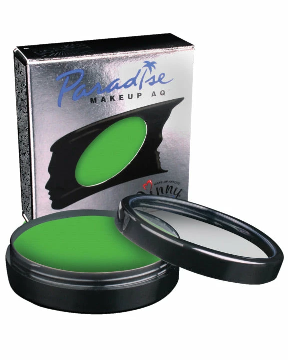 Paradise Pro Lt Green. 40 g. size Professional size Moist Cake Makeup. Color saturated, water soluble and semi-soft.