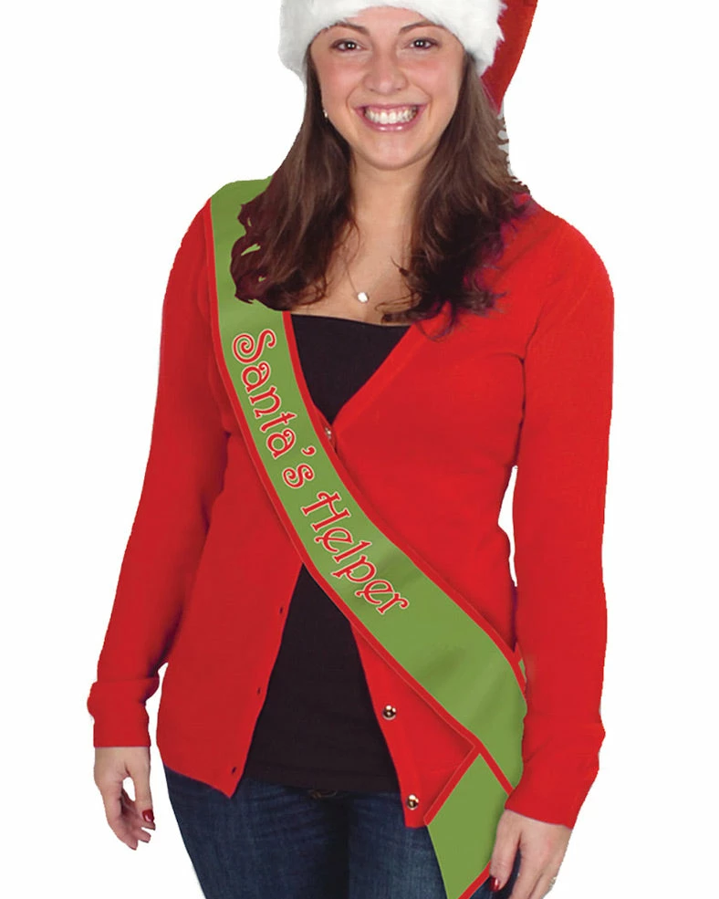 Perfect accessory for any elf! Red and green satin sash is 33 inches long X 4 inches wide. One size fits all.