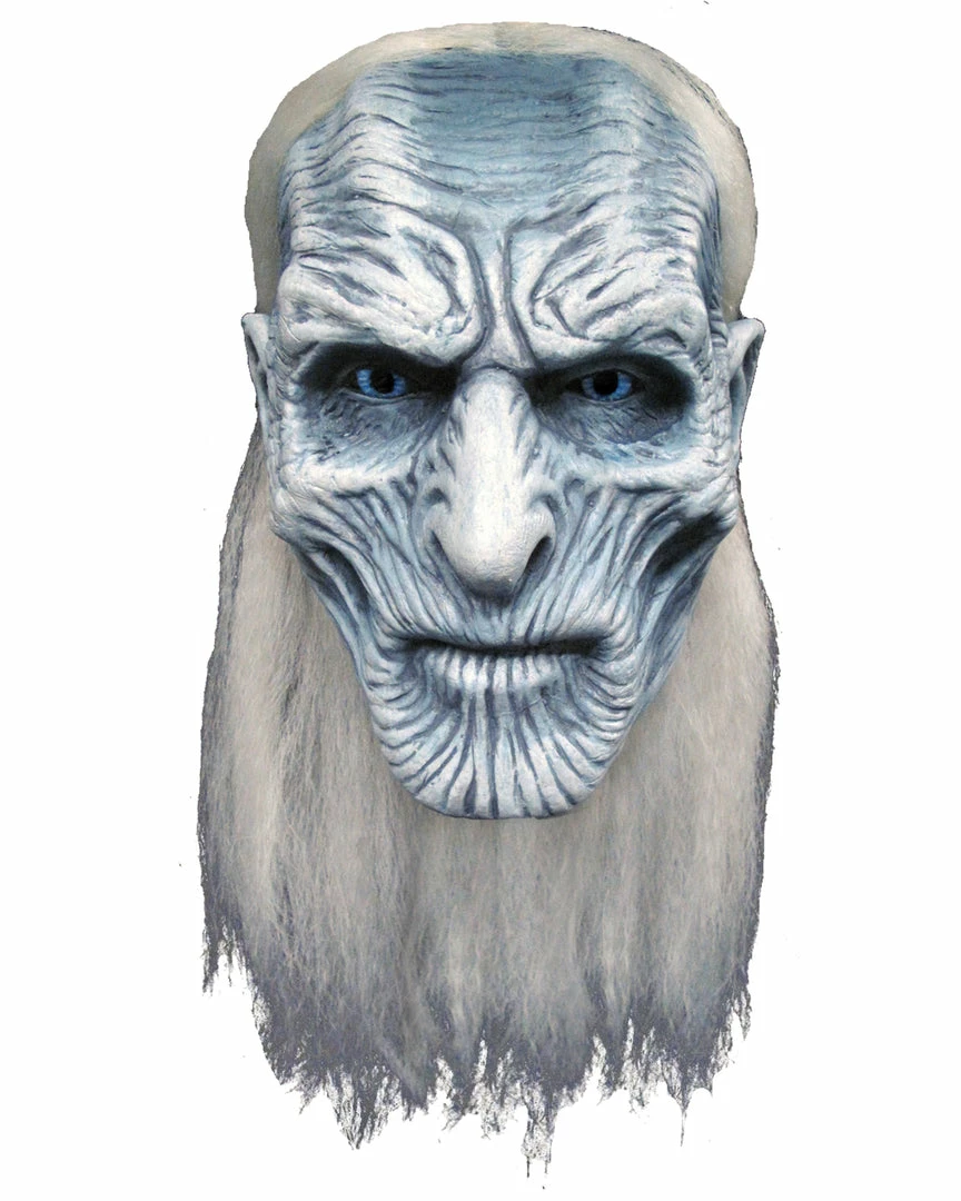 Game Thrones White Walker Mask. You can become one of the cool characters from the hugely popular show Game of Thrones with this cool mask. 100% latex, individually hand painted for the best look, full over-the-head mask. One size fits most adults. Mask has attached hair.