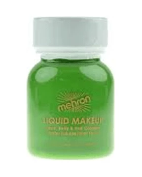 Liquid Makeup 1 Oz Green. A thick, rich water based liquid which is widely acknowledged as the best product of its kind on the market. Excellent coverage and soap and water removal make this the perfect choice.