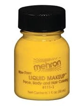 Liquid Makeup 1 Oz Yellow. A thick, rich water based liquid which is widely acknowledged as the best product of its kind on the market. Excellent coverage and soap and water removal make this the perfect choice.