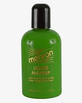 Liquid Makeup Green 4.5 Oz. A thick rich water base liquid. Ease of application, excellent coverage and soap and water removal makes our alcohol free makeup the perfect choice.