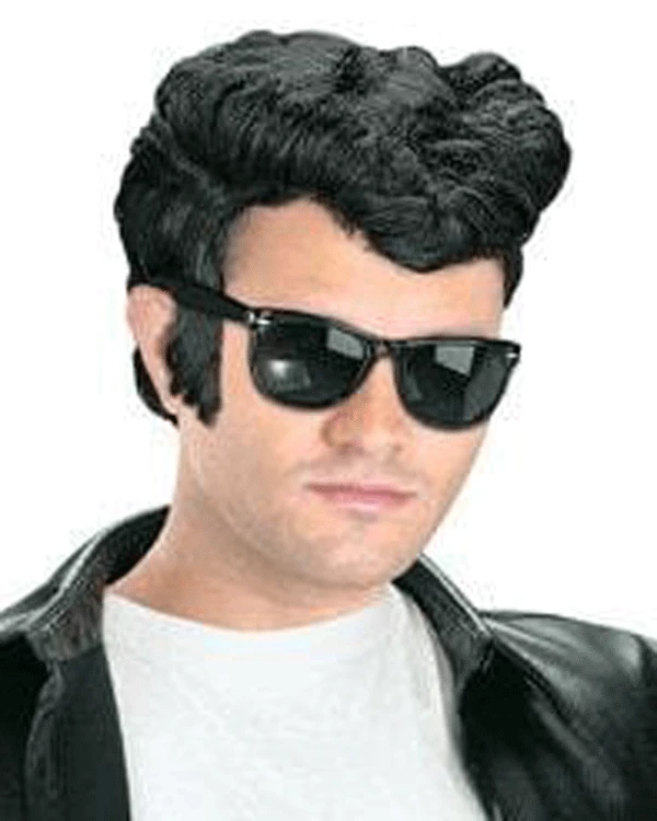Greaser Wig Black. Typical 50’s style wig with greaser look and long side burns.