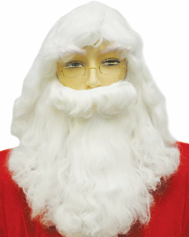 Santa Set At888 White. Economy version Santa Set comes with a wig and a mustache and beard. One size fits most.