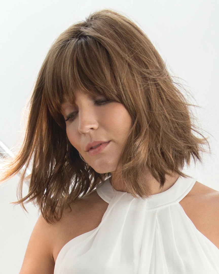 Alexi from Noriko is a short-length synthetic wig. This wavy ready-to-wear wig is a textured bob with bangs to fame the face creating a perfect modern fit. Alexi is lace front machine made that will give you a natural look. Alexi cap construction has adjustable tabs in the back nape area to allow a more comfortable fit. The result is a comfortable fit with a natural look that is both fashionable and easy to wear.