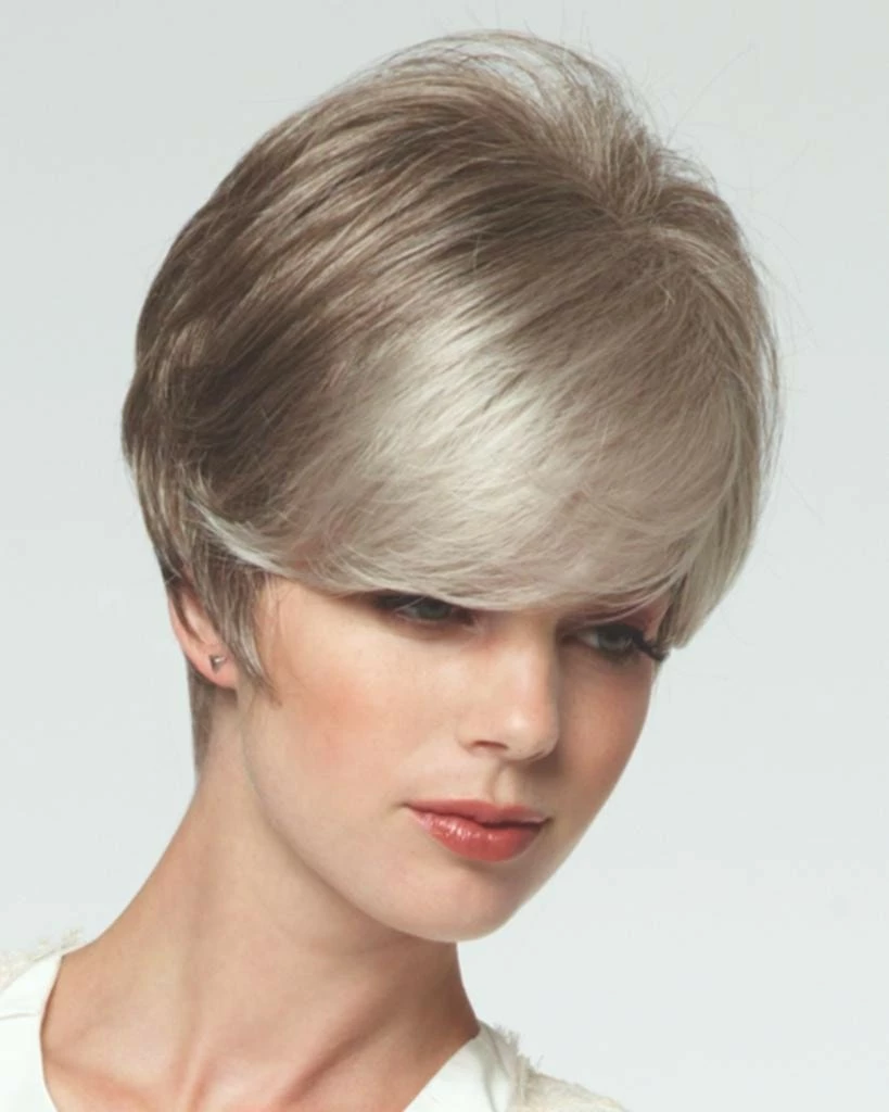 Eva by Noriko. Tightly tapered inverted bob with soft top layers that fall into a side swept fringe.