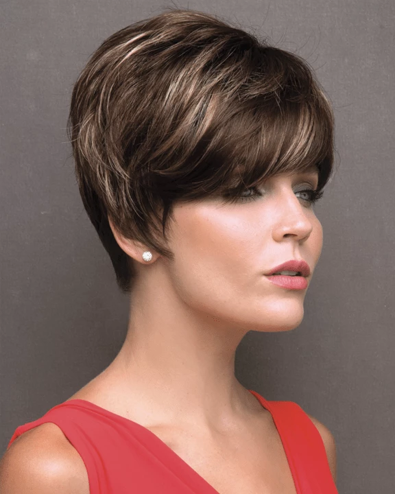 Noriko Jax wigs feature a partial monofilament (PM) cap construction. The 100% hand-tied section allows for added multi-directional styling while creating the illusion of natural hair growth. Additional cap construction features include machine wefted sides, a flower net top with two way stretch from front to back, and a soft flower net nape and ear tabs with adjustable band that contours to the shape of the head. Jax’s partial monofilament (PM)cap construction provides a cooler, all day wearing comfort.