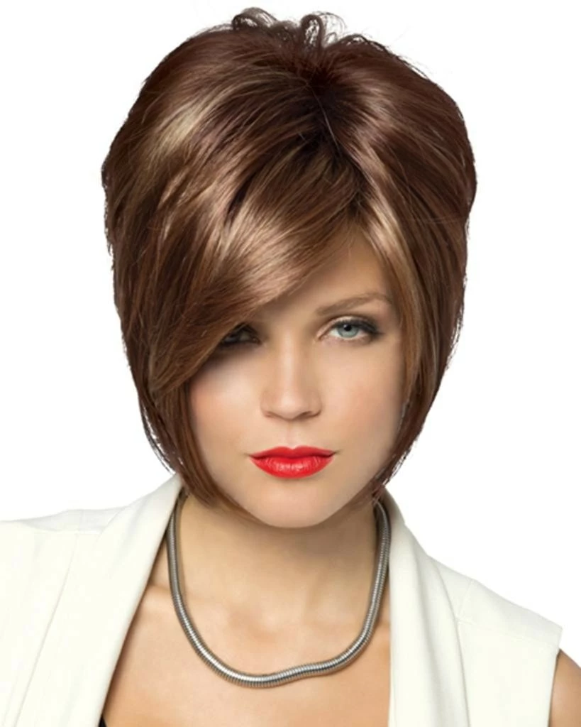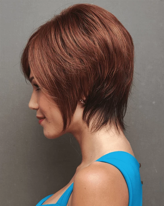 Kate by Noriko features razored finished tiers and arched ends complementing this geometric fringed bob.