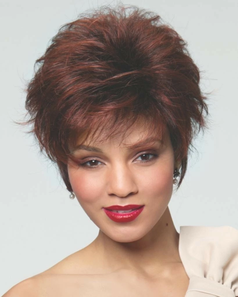 Roni by Noriko. Volumized, multi-layered texture with nape-hugging tapered edges.