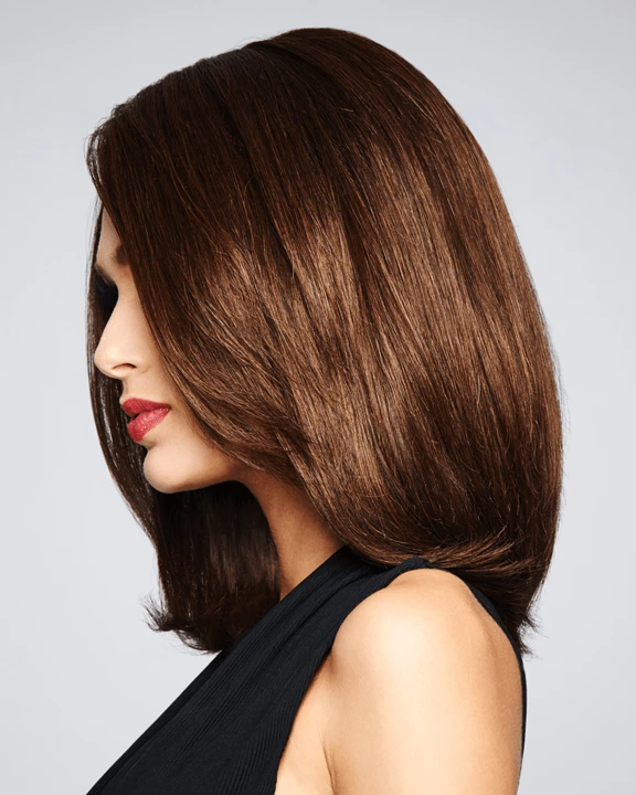 Beguile by Raquel Welch. Captivate your audience in this shoulder-length bob. The hand-tied monofilament top creates a scalp like appearance and lets you completely change your look just by changing the part. Style the 100% human hair with a sexy side part or create a trendy center part with beach waves. Gorgeous volume and silky shine have never been this easy and long-lasting.