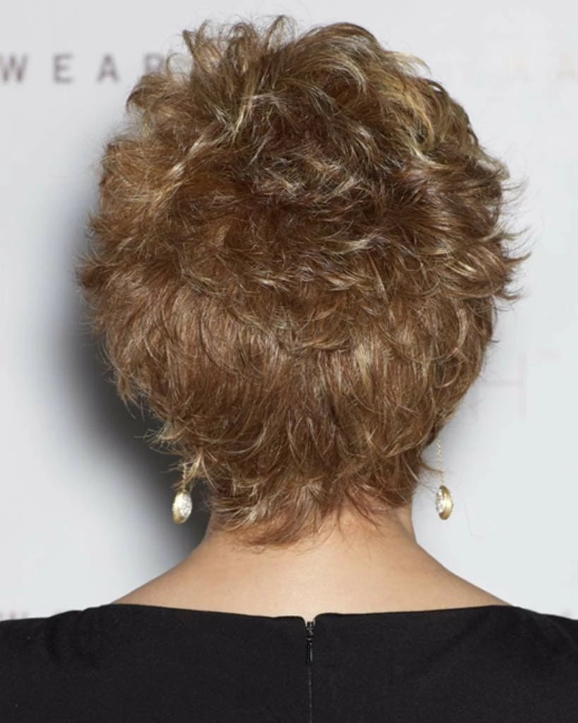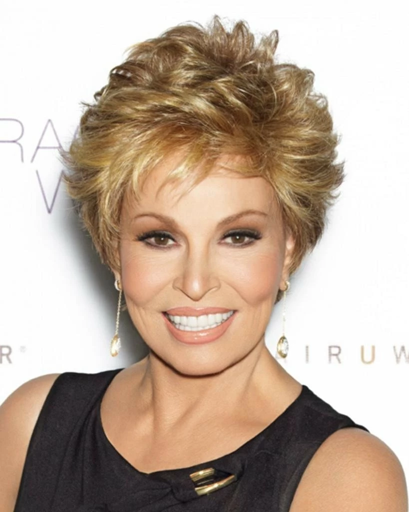 Center Stage by Raquel Welch. Under two ounces in weight, this short basic cut offers softly curled all-over layers that blend into an extended nape. Plus it has the luxury of a Sheer Indulgence™lace front monofilament top and 100% hand-tied base for the ultimate in styling options.