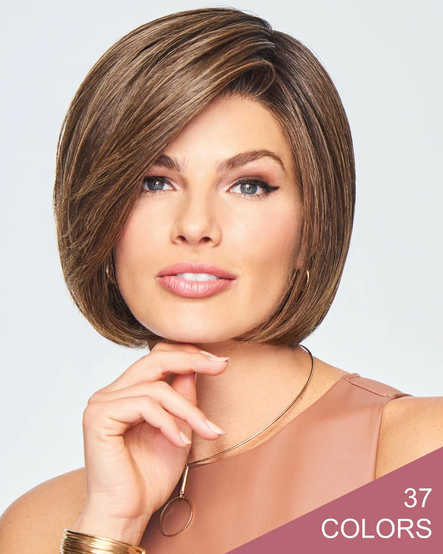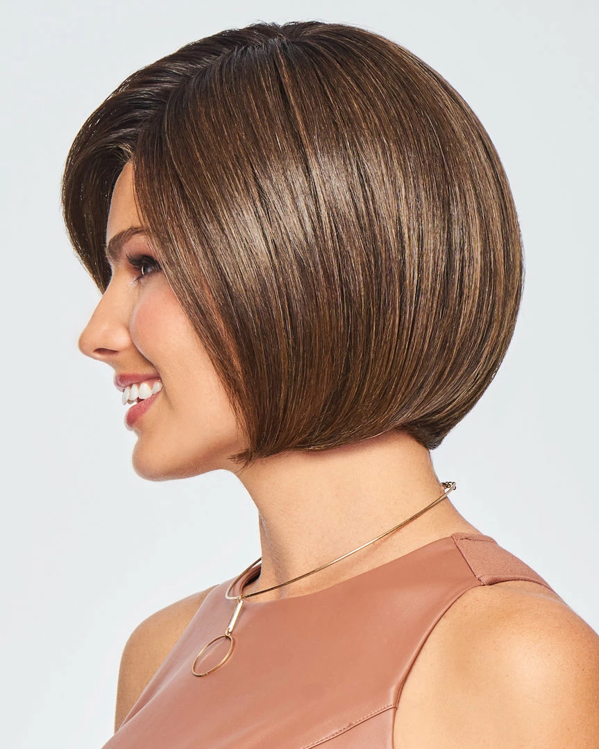 Meet the boldest bob of the bunch. Whether meeting up at the local café or stealing away for a secret soiree, this chic, jaw-length bob is always ready for the next adventure. A swingy cut with slightly layered ends for a softer look and enough length to tuck behind the ear. The full mono top gives you the styling flexibility you love, without any excess bulk.