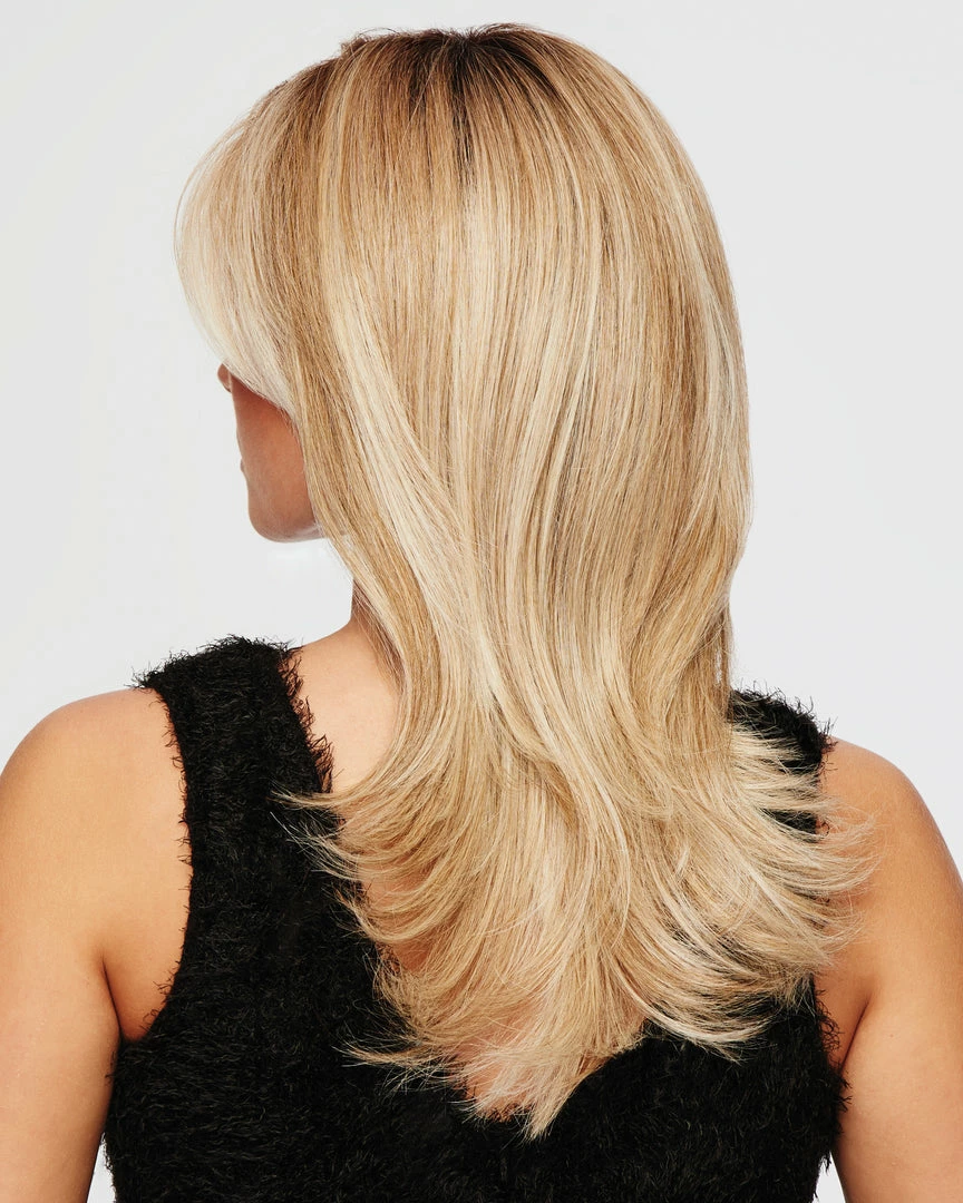Loads of long layers that fall to mid-back define this soft feminine cut. Wear it curly, barely waved or whatever way suits you. The Sheer Indulgence™ Lace Front, Monofilament Top and Tru2Life® synthetic hair makes your styling options limitless!