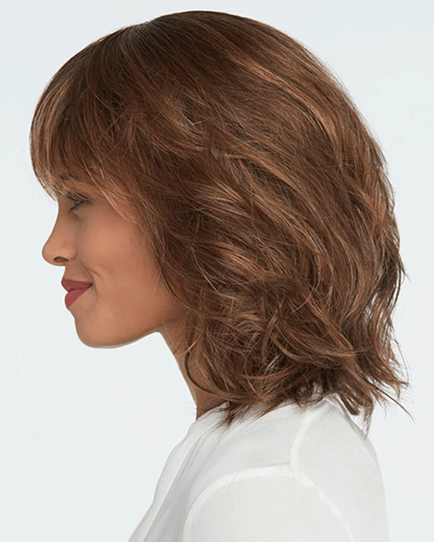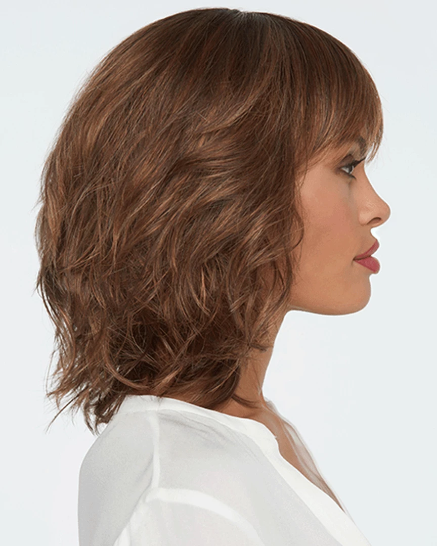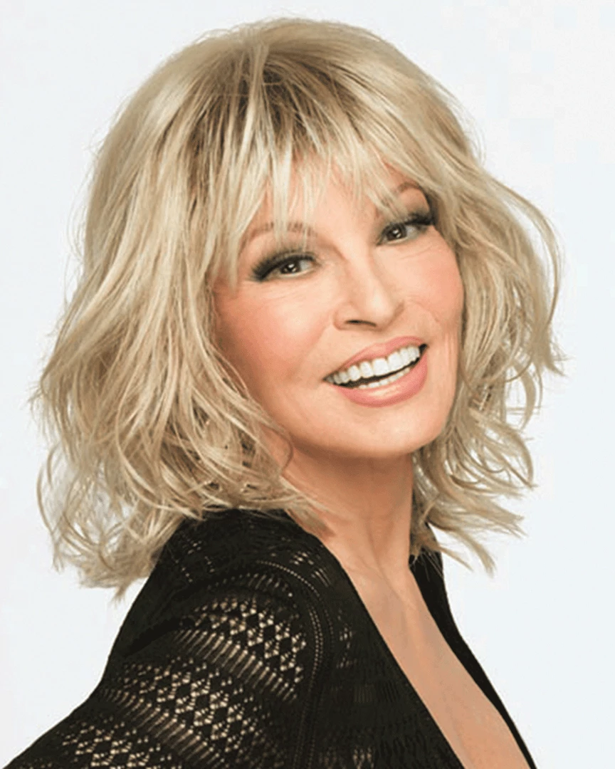 Stop Traffic by Raquel Welch. Texture and movement are the inspiration for this blunt, to-the-shoulder bob. A soft, razor cut fringe frames the eyes while tousled and loose curls are layered throughout for natural volume and an unconstructed look. The Sheer Indulgence monofilament crown provides a natural contour.