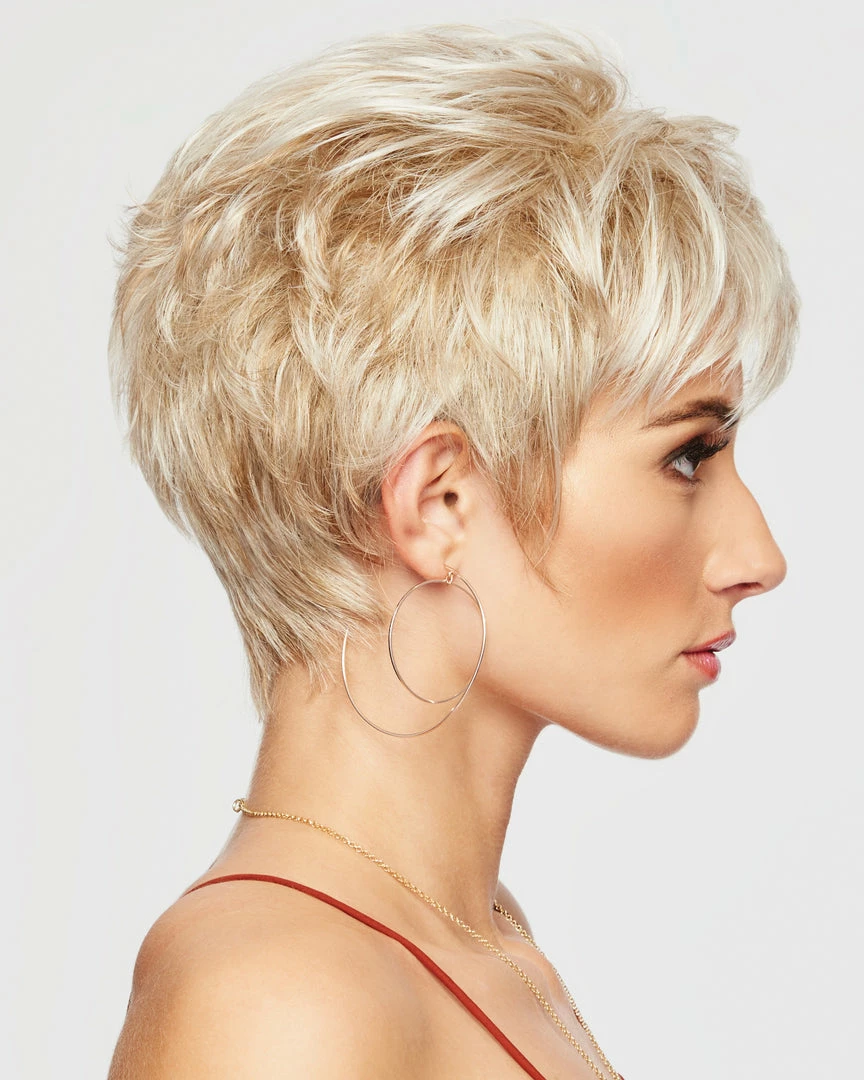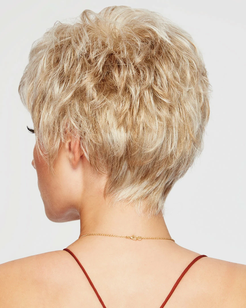 Sparkle by Raquel Welch. Ready to wear right out of the box, this short, face-framing cut includes a smooth front & top that blend into short textured layers throughout the back and sides. And it’s only two and a quarter ounces in weight!