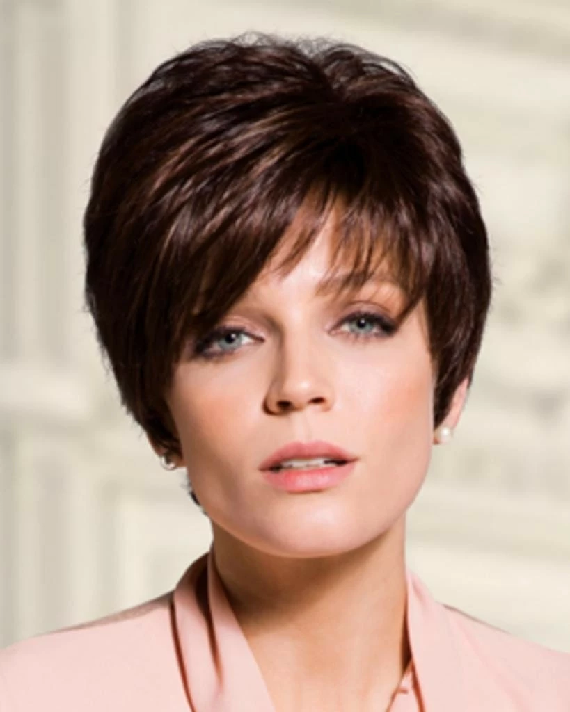 Gia by Rene of Pairs. A chic tapered look with effortless elegance. This straight ready-to-wear wig will give you that effortless elegance look with its chic tapered style and side swept fringe. Gia is machine made with adjustable tabs in the back nape area to allow a more comfortable fit. The result is a comfortable fit with a natural look that is both fashionable and easy to wear.