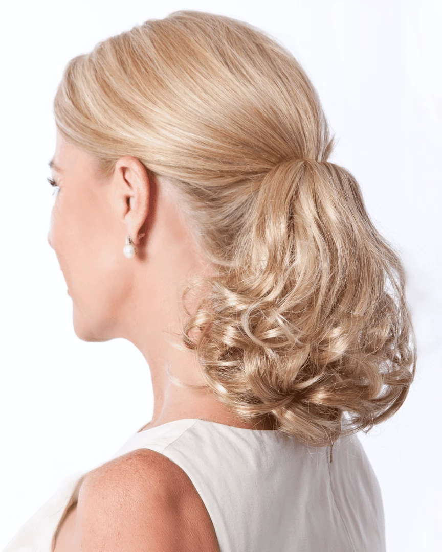 Pony Double Play by Toni Brattin. Clip-On (4″ Claw Clip) full ponytail that instantly adds volume, length and bounce… and reversible for extended length and limitless styling options. Wear it high or low for a completely different hairstyle. Looks and feels like healthy, natural hair.