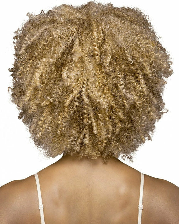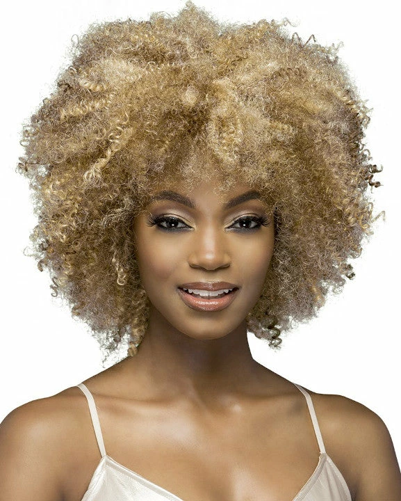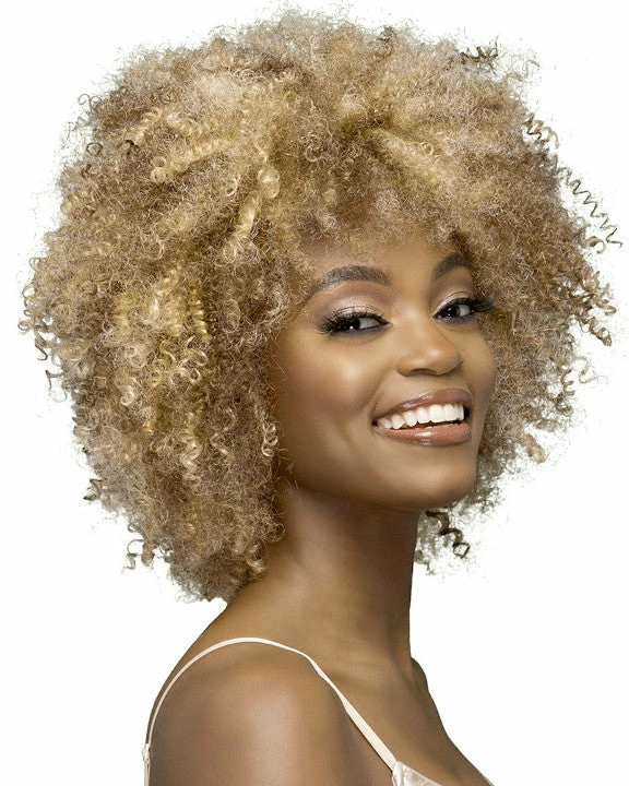 Beth by Vivica Fox is an 11 inch layered tight afro curl with bangs. No styling needed.
