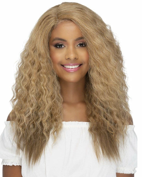 Daytona by Vivica Fox is an 23 inch natural crimp curl with a invisible part.