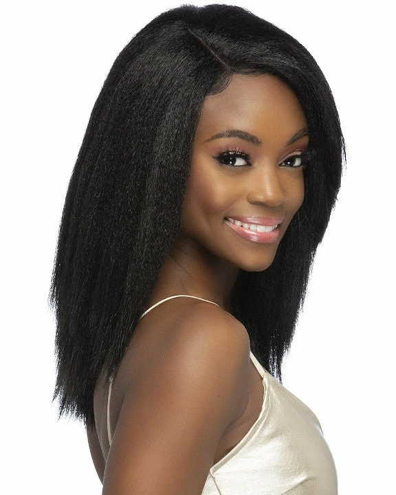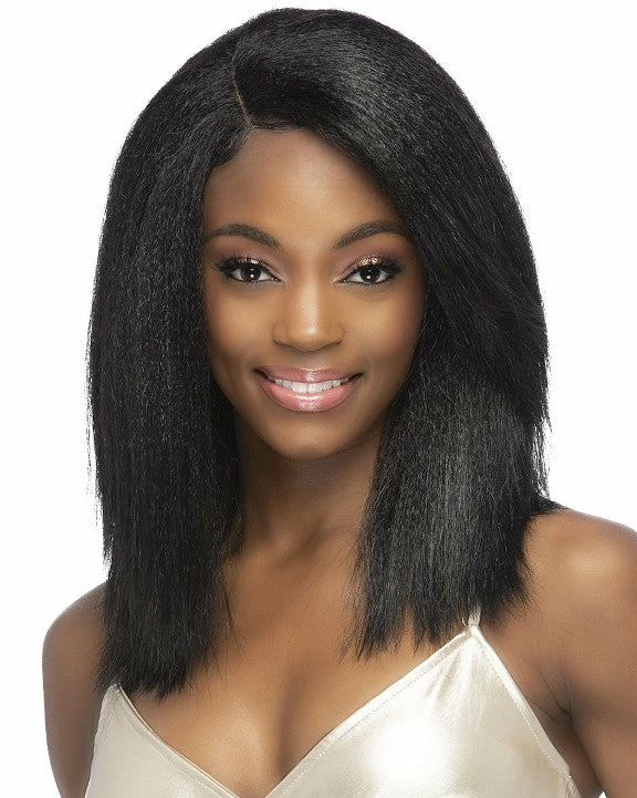 Edeline by Vivica Fox is an 17 inch layered straight style with a side swept layered bang.