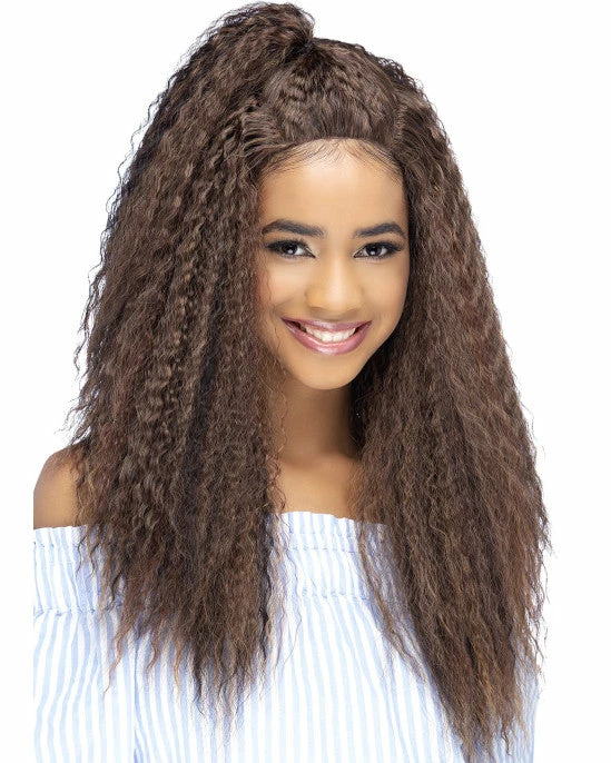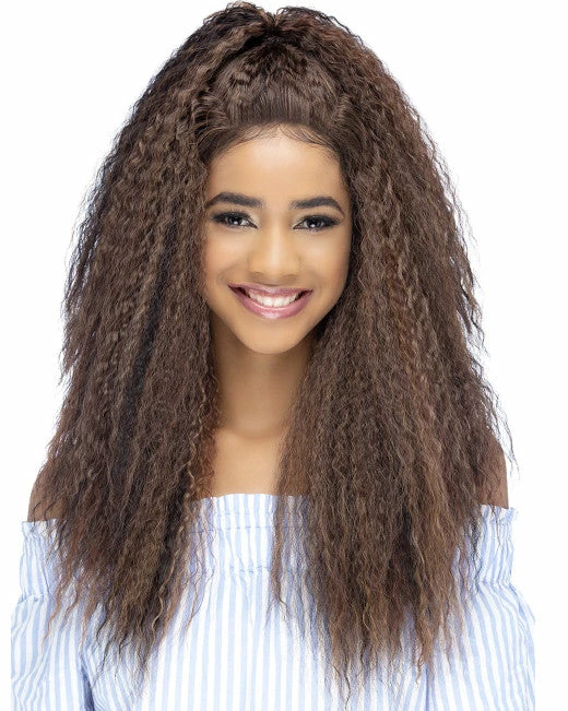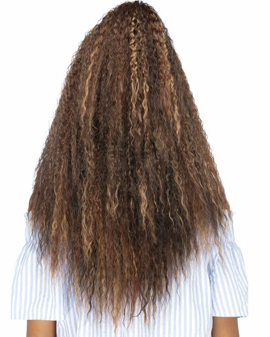 Manuka by Vivica Fox is an 24 inch layered water wave with top tied hair & invisible U part. Trendy half up, half down style.