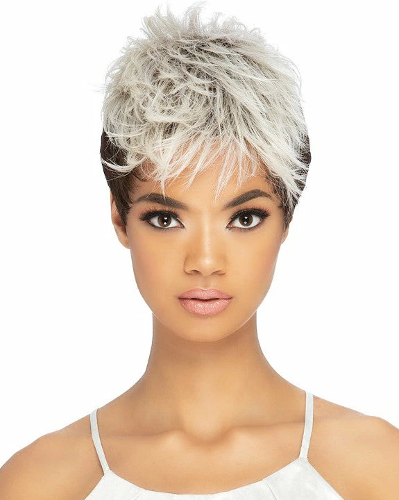 McKenna by Vivica Fox is a short layered cut with whispy top & invisible back crown.