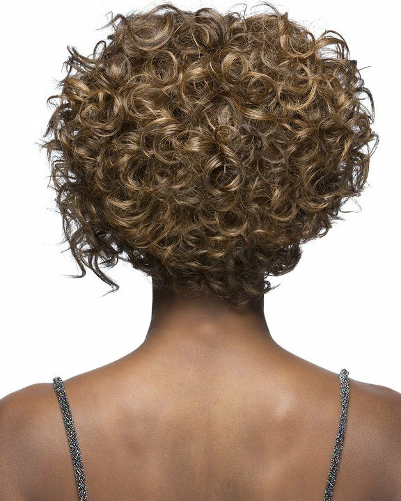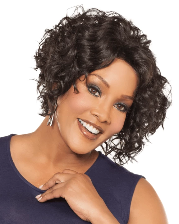 Megan V by Vivica Fox is a 10 inch angled spiral curl with long sides and natural baby hair in the front to enhance the natural look of it. Its high heat resistant fiber not only curls well, but also keeps the curl longer to keep the hair look beautiful. It is featured with lace front which will enhance the natural look of yours when you wear the wig.