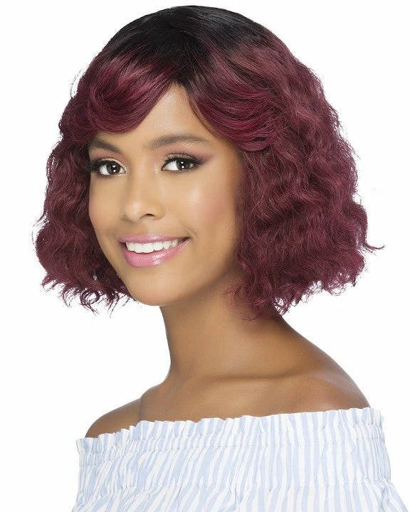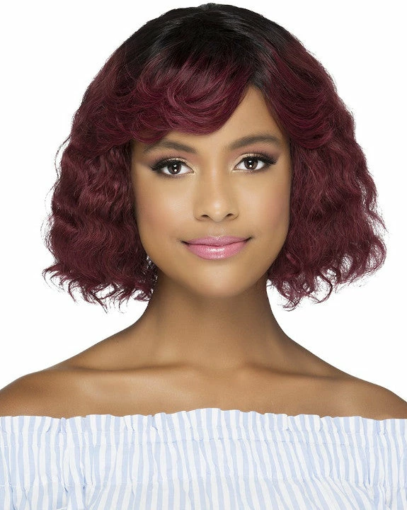 Nikita by Vivica Fox is an 11 inch body wave with side swept bang.