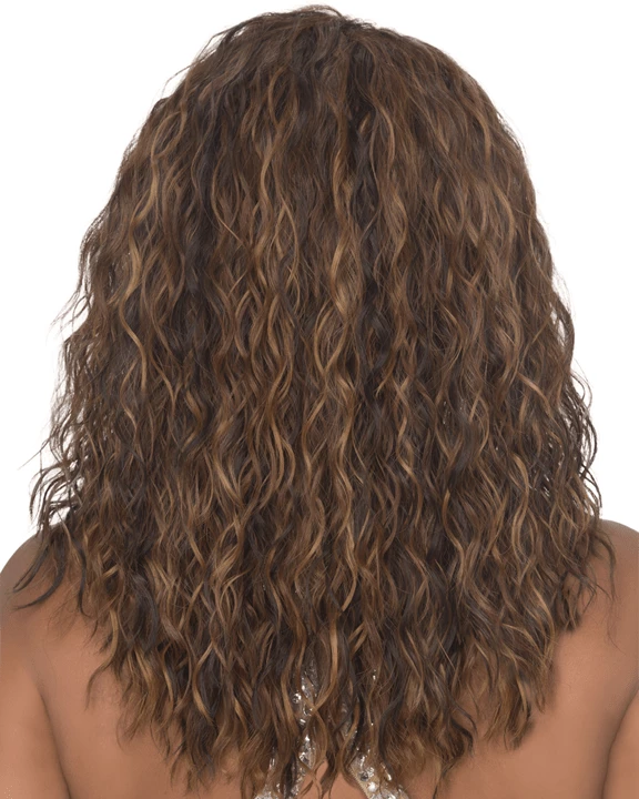 Orlando V by Vivica Fox is a 19 inch wig with very loose water wave. Its high heat resistant fiber not only curls well, but also keeps the wave longer to keep the hair look beautiful. It is featured with deep lace front that is twice deeper and wider than other lace fronts and, also hand-stitched to enhance the natural look even more. inch layered style with roller set and spiral sides. Its high heat resistant fiber not only curls well, but also keeps the curl longer to keep the hair look beautiful. Lace front with hand-stitched hair will make it look very natural. Long draping gorgeously curly hair will put a spotlight on you wherever you go.