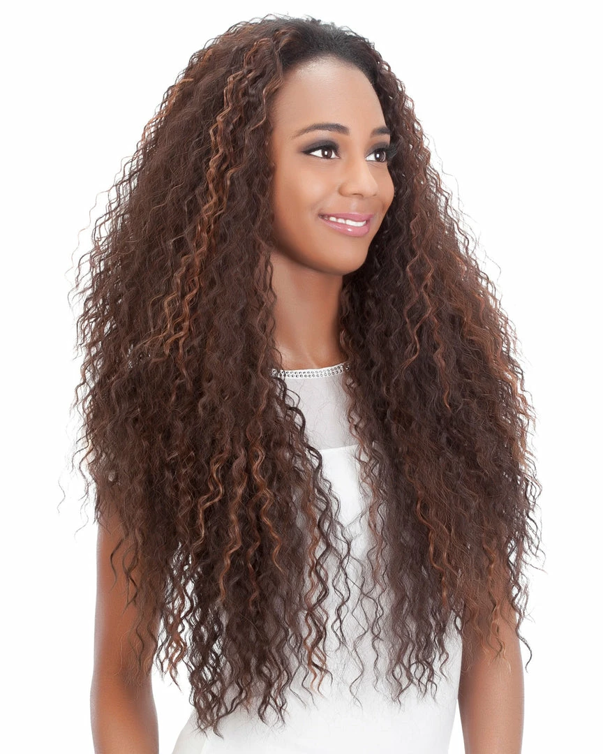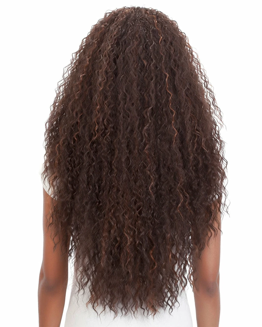Paki by Vivica Fox is a 28 inch 3/4 express wig with layered loose water waves. Vivica’s 3/4 express wig has secure combs inside of the cap in the front and the back to prevent it from moving. The adjustable strap allows you to control the comfort level. Its Kanekalon New Futura synthetic high heat resistant fiber not only holds curls well, but also retains the curl longer than usual to keep the hair looking beautiful. This one piece is quick to install by blending your own hair, you’ll be out of the door in no time.