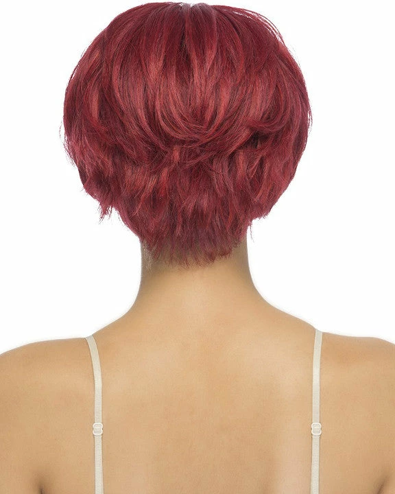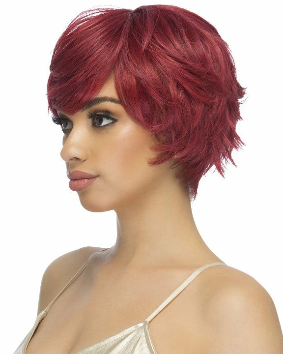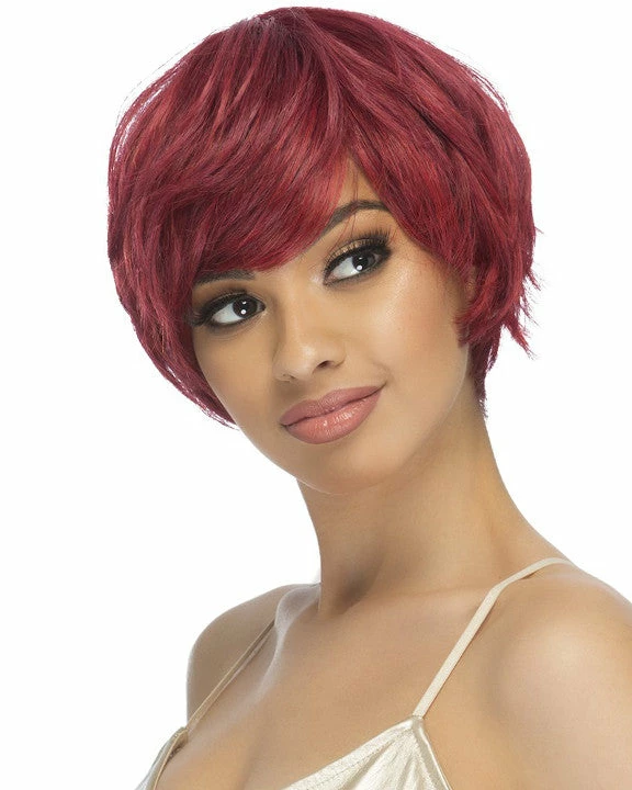 Cassandra by Vivica Fox is an short layered whipsy cut with bangs that is a fun, funky, trendy loose end bob.
