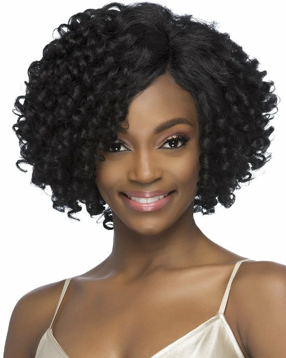 Elysia by Vivica Fox is an 10 inch layered tight wand curl with an invisible part.