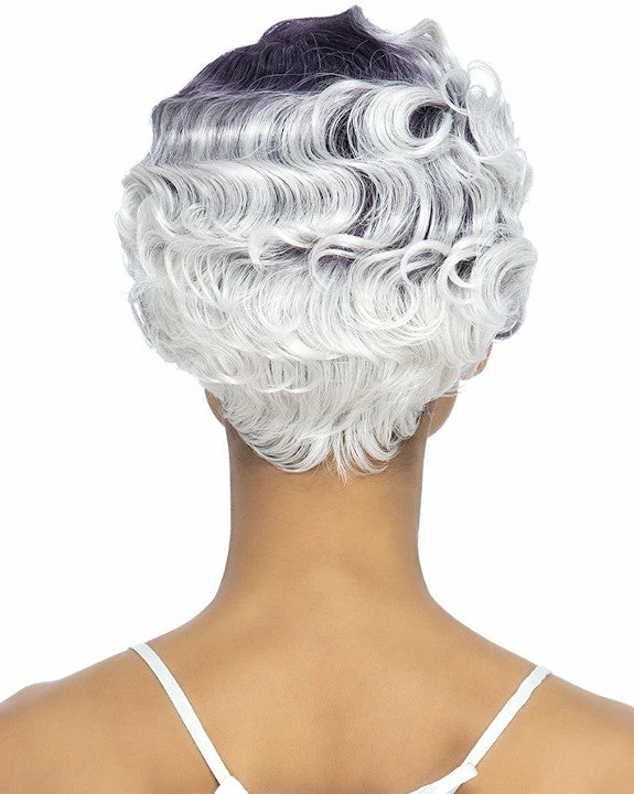 Gracelyn by Vivica Fox is a short finger wave that tapers back with an invisible side part.