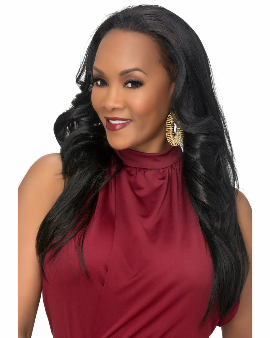 Trinity by Vivica Fox is a 26 inch 3/4 Express wig that features layered straight style with side romance curl. Vivica’s Express wig has secure combs inside of the cap in the front and the back to prevent it from moving, and also the adjustable strap allows you to control the comfort level just right for you. FHW-TRINITY has a combination of straight style for luxurious look while romance loose curl gives a glamorous point to it. Its Kanekalon New Futura synthetic high heat resistant fiber not only curls well, but also keeps the curl longer to keep the hair look beautiful. Security, comfort, and beautiful and natural style are all in this one piece.